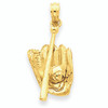 14K Yellow Gold 3D Baseball Bat and Glove Sports Pendant