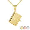 This three dimensional Islamic sacred book Quaran pendant with moveable pages is made of polished Solid Gold or Sterling Silver. The Koran consists of 114 units of varying lengths, known as suras ; the first sura is said as part of the ritual prayer. These touch upon all aspects of human existence, including matters of doctrine, social organization, and legislation.