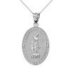 The Cubic Zirconia Saint Lazarus Filigree Oval Medallion Pendant Necklace offers a beautiful blend of spirituality and elegance. At the center of the pendant, Saint Lazarus, known for his symbolism of healing and protection, is intricately detailed, providing a sense of faith and comfort. Encircling this revered figure is a delicate filigree design that adds an artistic touch to the medallion's timeless charm.