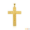Gold INRI Checkered Cross Crucifix Jesus Christ Pendant Necklace (Available in Yellow/Rose/White Gold)