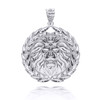 Silver Lion Head Laurel Wreath Pendant Necklace