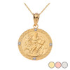 Solid Gold Saint Mark Round Diamond Pendant Necklace (Available in Yellow/Rose/White)