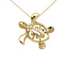 Gold Diamond Hawaiian Lucky Charm Honu Turtle Hidden Bail Pendant Necklace(Available in Yellow/Rose/White)