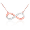 14K Rose Gold horizontal Infinity Pendant Necklace studded with 16 diamonds.