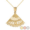 Cut Out Folding Hand Fan Pendant Necklace in Solid Gold (Yellow/Rose/White)