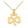 Yellow Gold Polished Lucky Shamrock Pendant Necklace