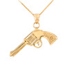Solid Gold Gun Revolver Pistol Pendant Necklace (Available in Yellow/Rose/White Gold)