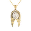 High Polished Two Elegant Detailed Design Yellow Gold CZ Angel Wing Pendant Necklace With its high-polished elegant design, this gold Cubic Zirconia wings pendant will definitely showcase your angelic and sophisticated getup.