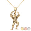 Weightlifting Fitness Sport Bodybuilder Pendant Necklace in Solid Gold (Yellow/Rose/White)