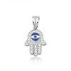 .925 Sterling Silver Enamel Cubic Zirconia Studded Hamsa Hand Evil Eye Of Protection Pendant Necklace