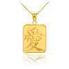 Solid Gold Chinese "Love" Symbol Square shape Medallion pendant necklace.
