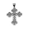 Silver Vintage Antique look Filigree Diamond Cut Cross Pendant Necklace