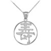 925 Sterling Silver Chinese Long Life Symbol Open Medallion Pendant Necklace
