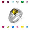 .925 Sterling Silver Oval Gemstone CZ Men's Ring