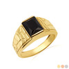 Gold Black Onyx Gemstone Nugget Milgrain Signet Ring (Available in Yellow/Rose/White Gold)