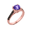 Rose Gold Amethyst and Black Diamond Solitaire Engagement Ring
