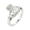 The Claddagh ring seen here somehow makes its Love, Loyalty and Friendship symbolism even more meaningful. This well-crafted silver ring with Cubic Zirconia center stone will make a great addition to any collection and is complete with a dazzling high polish which is sure to catch the eye of anyone who can appreciate it's beautiful design.