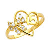 Gold Cubic Zirconia Butterfly 15 Años Heart Quinceañera Ring
