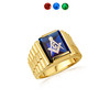 Yellow Gold Men's Symbolic Brotherhood Freemason Masonic CZ Stone Ring
