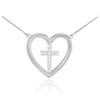 925 Sterling Silver Open Heart CZ Cross Enclosure Necklace, studded with 12 cubic zirconias.