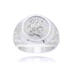 The Beaded Patron Saint George Dragon Cross Signet Ring features a striking design with Saint George triumphing over the dragon, symbolizing courage and faith. The beaded texture enhances the ring's intricate detail, while crosses on the sides of the band add an extra layer of religious symbolism and significance.