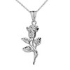 .925 Sterling Silver Diamond Cut Flower Rose Pendant Necklace