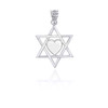 .925 Sterling Silver Jewish Star of David Heart Pendant Necklace
