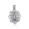 .925 Sterling Silver Our Lady of Guadalupe Greek Key Oval Textured Pendant Necklace