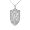 The Patron Saint Michael Archangel Shield Pendant Necklace features a bold and symbolic design, showcasing Saint Michael in a powerful stance with a shield. The shield represents divine protection, and the detailed engraving of the archangel emphasizes strength, courage, and spiritual defense.