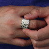 This silver nugget ring showcases a striking textured design that blends rugged charm with refined sophistication. Its unique nugget-inspired pattern gives it a bold and masculine presence, perfect for making a confident style statement.