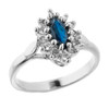 Sterling Silver Marquise Blue Sapphire and White Topaz Ladies Princess Ring