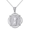 Solid White Gold Saint Andrew Pray For Us Diamond Circular Frame Pendant Necklace