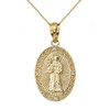 Solid Gold Engravable Diamond Saint Anthony Pray For Us Oval Pendant Necklace 1.04"(Available in Yellow/Rose/White/Two Tone Yellow/Two Tone Rose Gold)