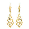 Solid Yellow Gold Teardrop Filigree Tribal Drop Earring Set 1.67" (42 mm)