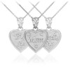 Breakable 3pcs solid sterling silver 'Mom', 'Big Sis', 'Little Sis' Heart Pendant Necklaces Set.