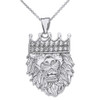 Sterling Silver Double Sided Text Embossed Cubic Zirconia Lion King Pendant Necklace