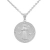 Sterling Silver Saint Francis of Assisi Circle Engravable Medallion CZ Stone Pendant Necklace (Small)