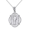 Sterling Silver Saint Jude Pray For Us CZ Oval Frame Pendant Necklace
