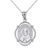 Sterling Silver Saint Nectarios CZ Oval Frame Pendant Necklace