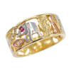 Tri-tone Gold Lucky Red CZ Ring with Owl, Elephant, Horseshoe,Evil Eye, Seven and Flower.