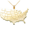 Beautiful high-polished United States Map Pendant Necklace in yellow gold. It is a great gift for yourself or a loved one and makes the perfect addition to your political and patriotic jewelry collection.