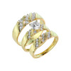 Gold Cubic Zirconia Striped Wedding Band Engagement Ring Set