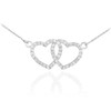 14K White Gold Double Heart Sideways Necklace fully studded with 46 diamonds.