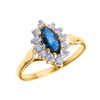 Yellow Gold Diamond and Marquise Sapphire Proposal Engagement Ring.