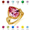 Gold Infinity Pear Cut Birthstone Beaded Ring (Available in Yellow/Rose/White Gold)