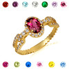 Gold Oval Gemstone Diamond Halo Studded Chain Link Ring 7.5mm (Available in Yellow/Rose/White Gold)