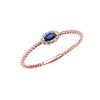 Rose Gold Dainty Halo Diamond and Marquise Sapphire Solitaire Rope Design Promise/Stackable Ring