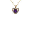Solitaire Amethyst and Diamond Heart Charm Pendant Necklace in Gold (Yellow/Rose/White)