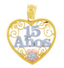 Celebrate a milestone with the Tri-Color 15 Años Quinceañera Heart Flower Pendant Necklace, a sophisticated symbol of love and growth. Featuring a single radiant cubic zirconia stone set within a heart-shaped design and surrounded by a delicate flower motif, this pendant embodies the beauty and significance of a quinceañera. The tri-color detailing adds an extra touch of elegance, reflecting the vibrancy and joy of this special occasion.