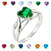 White Gold Birthstone Heart Cubic Zirconia Infinity Band Ladies Ring